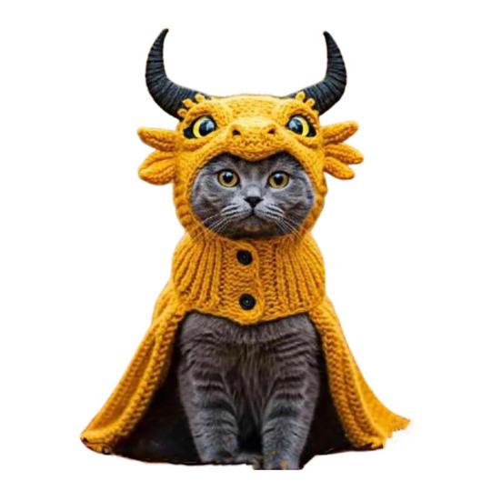 Сделай сам Толстовка с драконом-котом Одежда для косплея дракона Регулируемая одежда для питомца Вязаная толстовка для кошек Наряд для маленьких и средних собак и кошек жёлтый