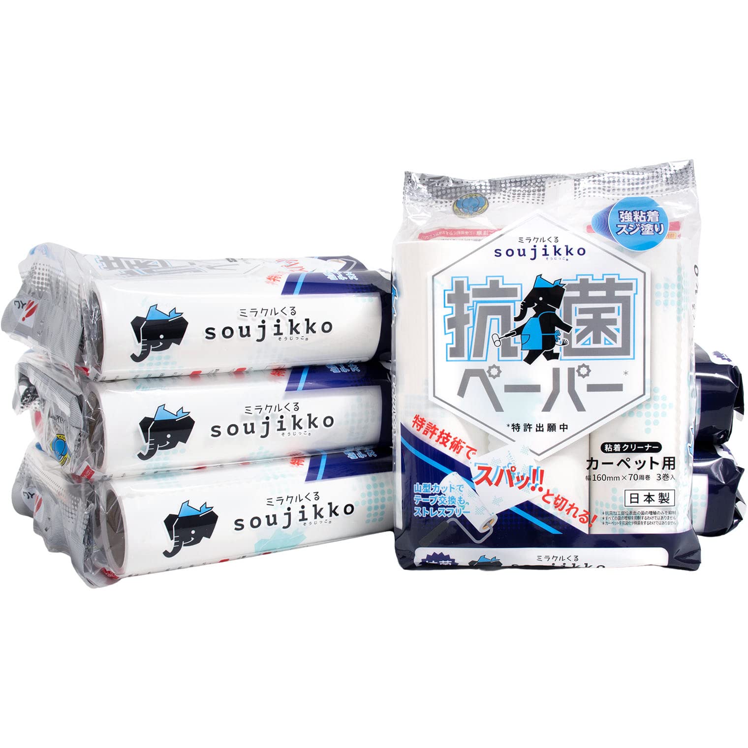 Сделано в Японии Miracle Kuru Soujikko Сильный клей Запасная лента для ковра 70 рулонов Антибактериальное полосатое покрытие 3 рулона x 6 упаковок Всего 18 рулонов Я