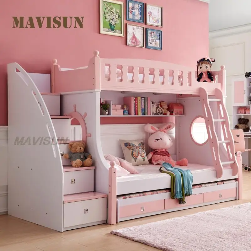 Северная европейская двухъярусная кровать для детей от 5 до 8 лет, современная прекрасная мебель для спальни для девочек, роскошная розовая кровать с замком