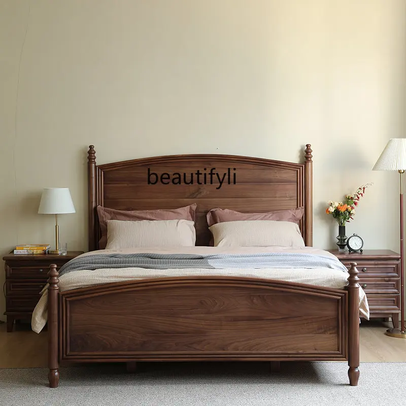 Северноамериканская черная ореховая американская кровать, двойная, 1,8 м, 1,5 м, Современная Минималистичная вилла, Главная спальня, Большая спинка, кровать из массива дерева