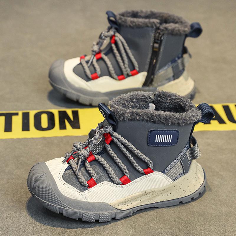 Северные зимние сапоги для мальчиков и девочек, бархатные большие хлопковые туфли для сохранения тепла зимой, новые зимние сапоги для одноклассников, детские сапоги для малышей 30