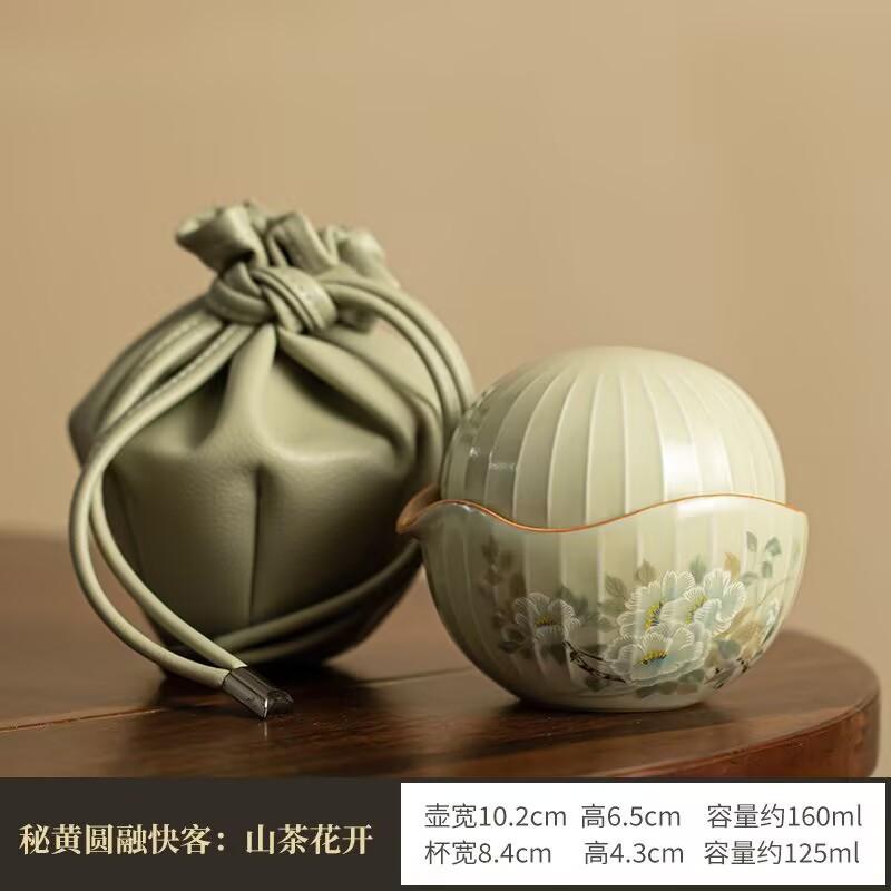 Секретный желтый сферический круглый фьюжн Kuaike печь Жу горшок и чашка дорожный чайный набор рисунок цветов и птиц уличный портативный чайный набор небольшой набор