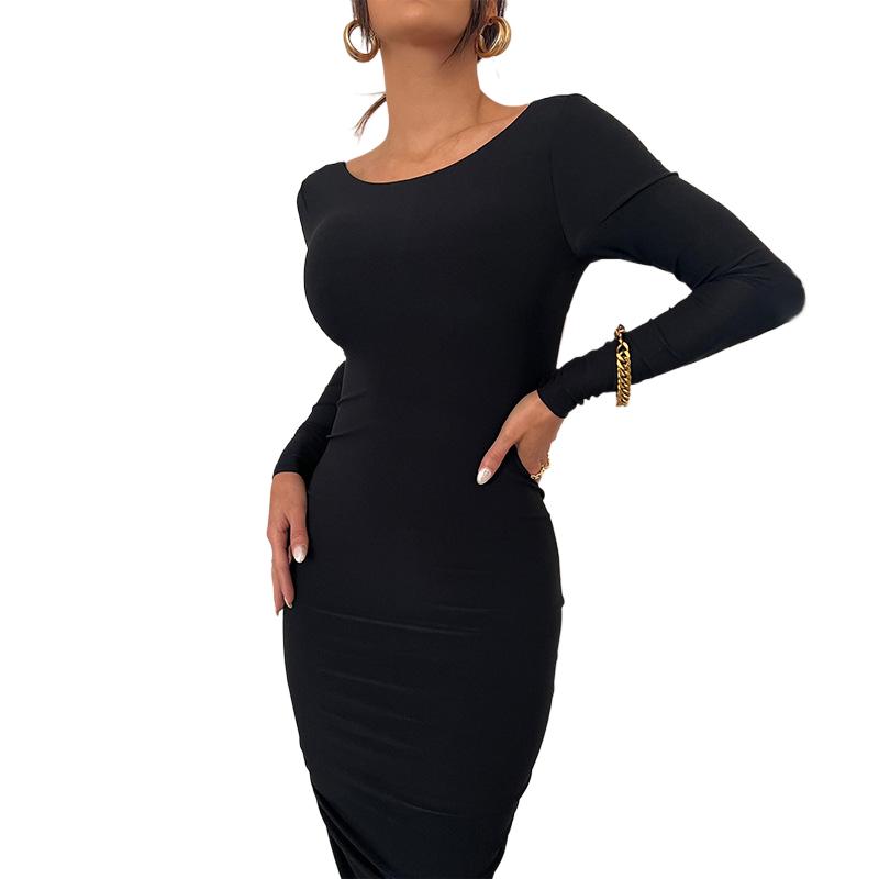 Сексуальная женская одежда для девочек, популярное платье с длинными рукавами, облегающее платье нестандартной формы с запахом на бедрах, вечернее платье с открытой спиной L чёрный