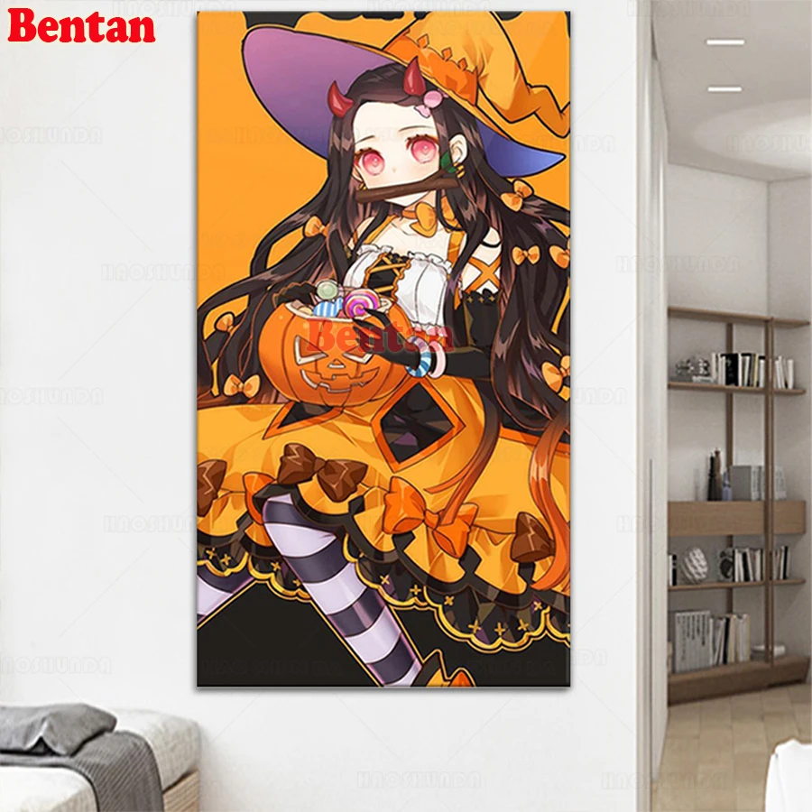 5D Diamond Painting Anime Halloween Girl Pumpkin Diy Diamond Embroidery Rhinestones For Needlework Mosaic Kit Home Decoration