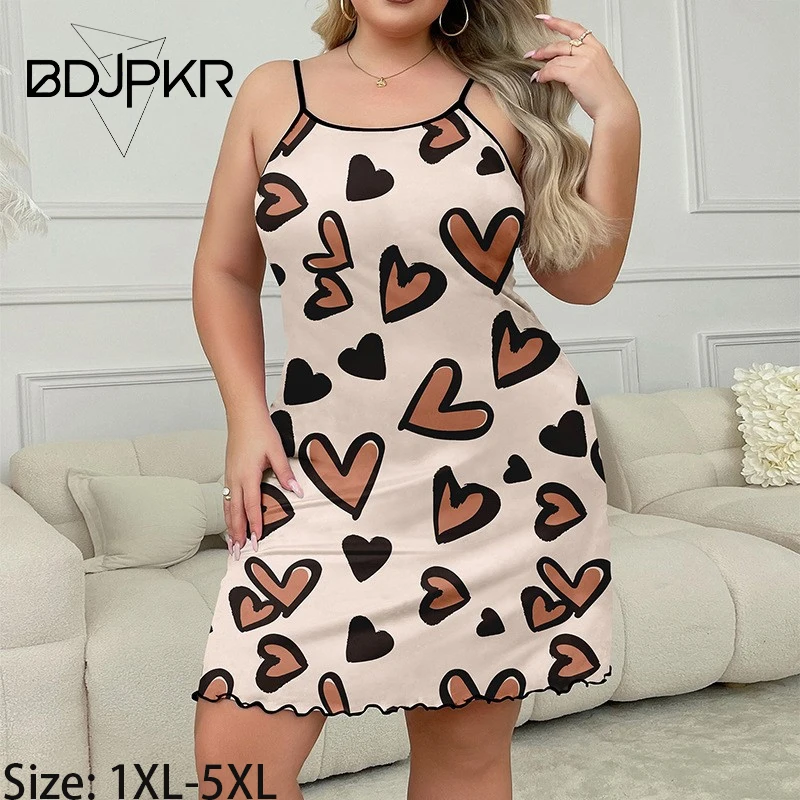 Сексуальная спальная юбка из молочного шелка с принтом любви на бретельках больших размеров, новая летняя женская домашняя одежда, платье YCF