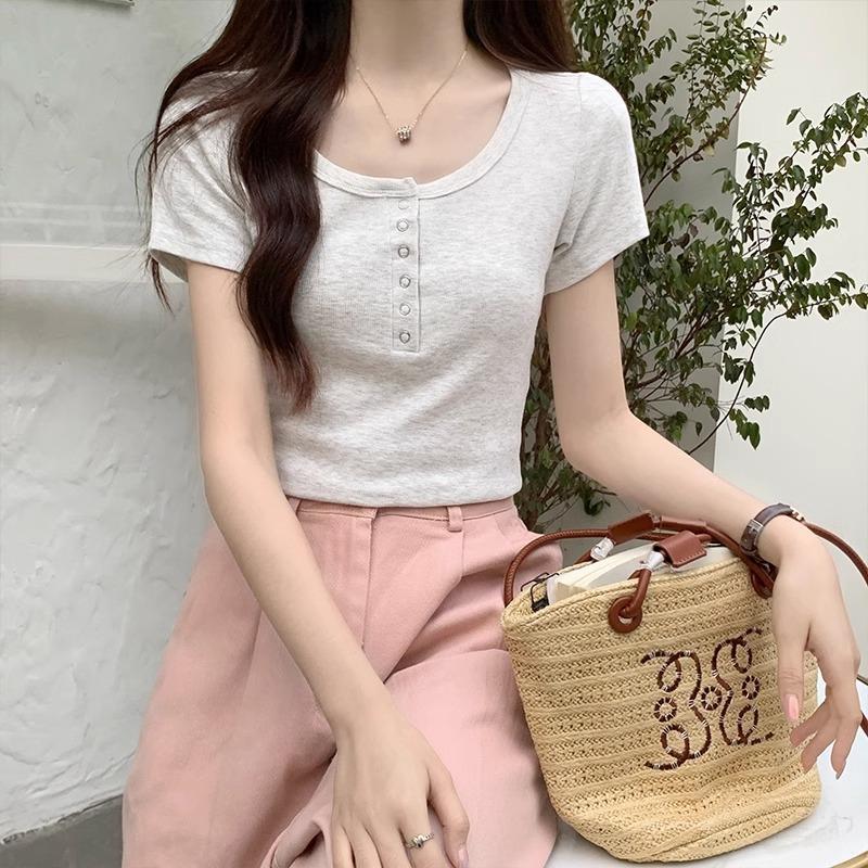 Сексуальная футболка с U-образным вырезом и короткими рукавами на правом плече для женщин, летняя, тонкая шелковая нить, модная и универсальная, шикарная, обтягивающая, топ для горячих девушек XL