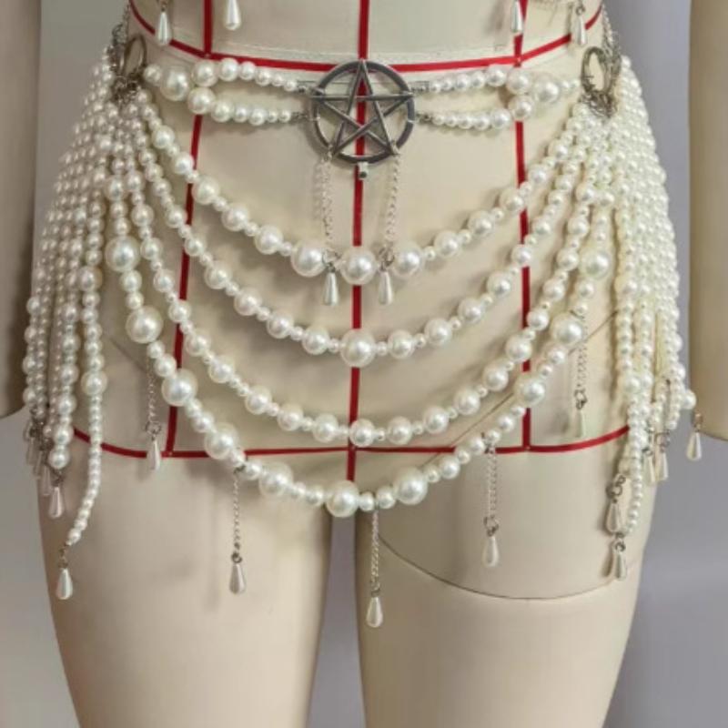 Сексуальная цепочка на грудь, жилет, дизайн с жемчугом, цепочка на талию, жемчуг, полая цепочка, комплект в стиле пэчворк, наряд для вечеринки average size
