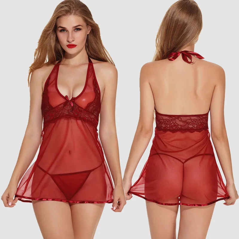 Сексуальное ГОРЯЧЕЕ белье, эротический комплект, сексуальная одежда, прозрачная ночная рубашка с лямкой на шее, прозрачная юбка, женское ни...