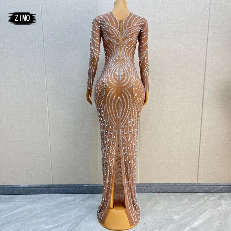 Сексуальное Серебряное блестящее платье с бахромой, прозрачное коричневое Сетчатое эластичное платье, вечерний наряд для празднования дня рождения, костюмы Drag Queen