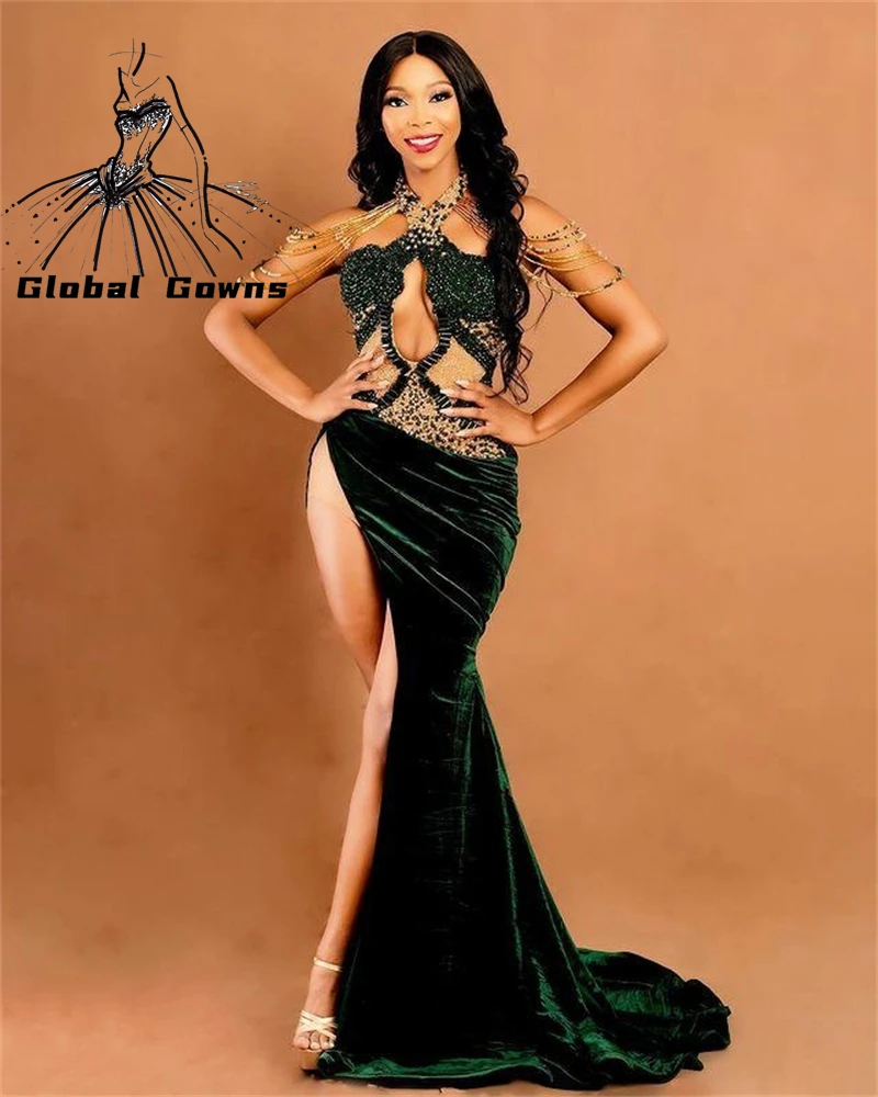 Сексуальное вечернее платье с лямкой на шее, вышитое бисером, с кристаллами и кисточками, официальные платья, вырез, для дня рождения, Нигери...