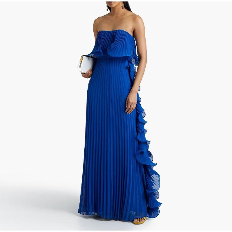 Сексуальное длинное желтое платье без бретелек с оборками, женское платье без рукавов и спины длиной до пола, вечерние платья, пляжное женское платье XXL синий
