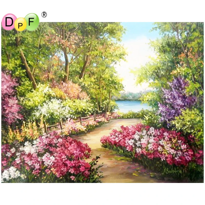 DPF DIY подарок цветок маленькая дорога 5D полная круглая алмазная живопись магический куб Вышивка крестом Алмазная Вышивка ремесла Мозаика Декор