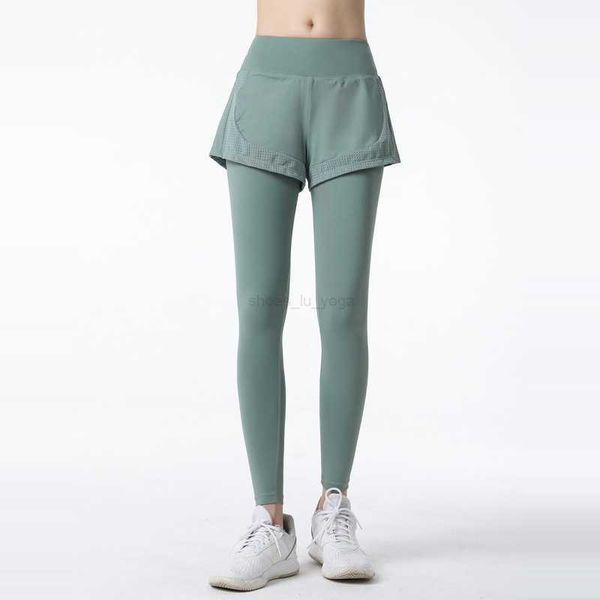lull women yoga leggings short fake two piece set sweatpants popular breathable anti-shrink gym sports pants training tights legging
