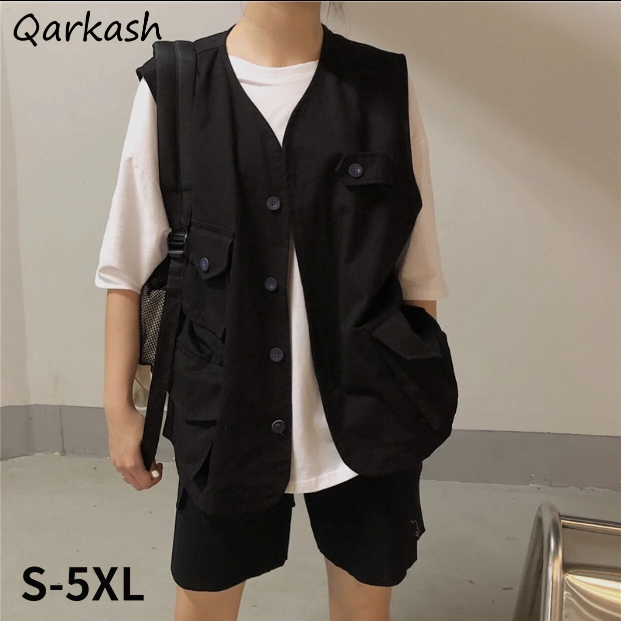 Жилетка женская однобортная в японском стиле, уличная одежда в стиле Харадзюку, Карго, однотонная свободная Классическая верхняя одежда унисекс для пар