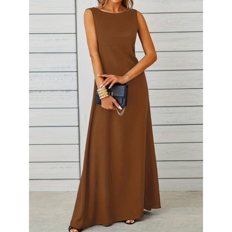 Сексуальное летнее черное платье без рукавов, модное элегантное женское облегающее свободное платье на бретельках, макси-длинное платье трапециевидной формы, женские повседневные платья с круглым вырезом 1034 XL темно-коричневого