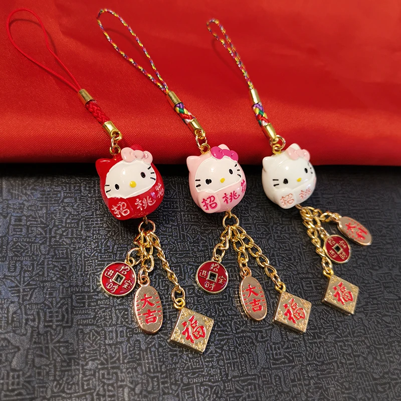 Short Pendant Key Anti-lost Hanging Chain Peach Blossom Pendant Mobile Phone Lanyard Cute Lucky Cat Pendant Antique Pendant
