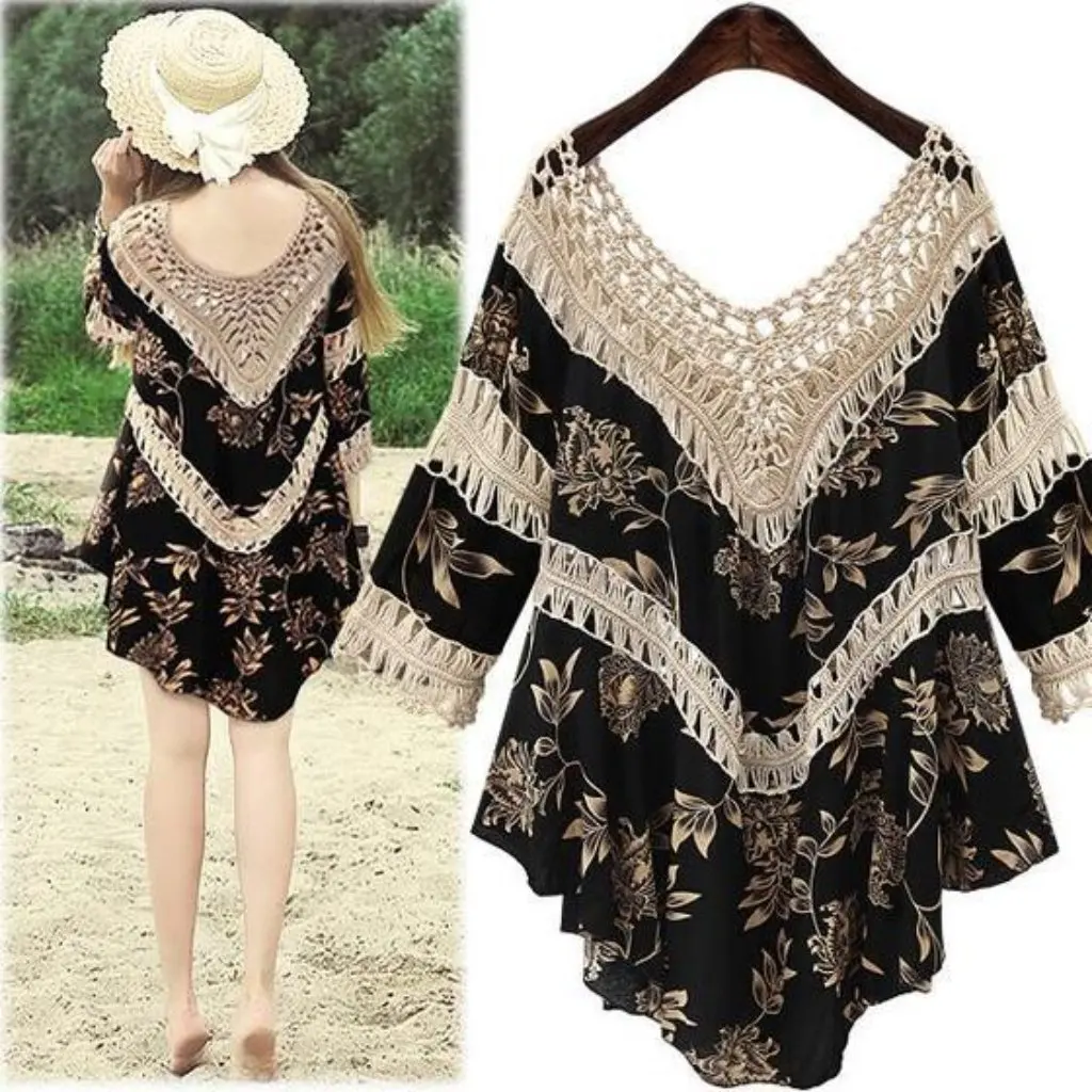 Сексуальное повседневное трикотажное платье в лесном стиле с вырезами, пляжная юбка очень большого размера, элегантная модная женская одежда больших размеров