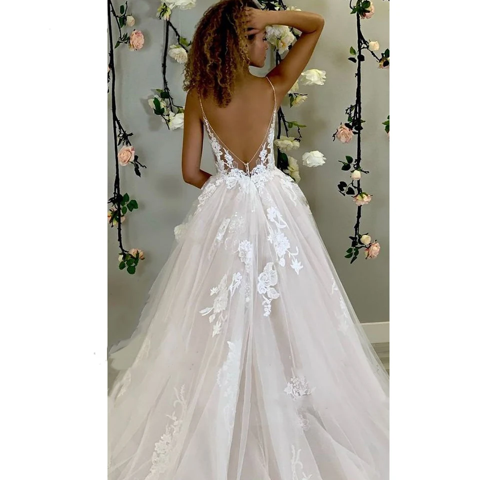 Сексуальное свадебное платье-трапеция GY, Модное шифоновое свадебное платье в стиле бохо на бретелях-спагетти с V-образным вырезом и апплика...