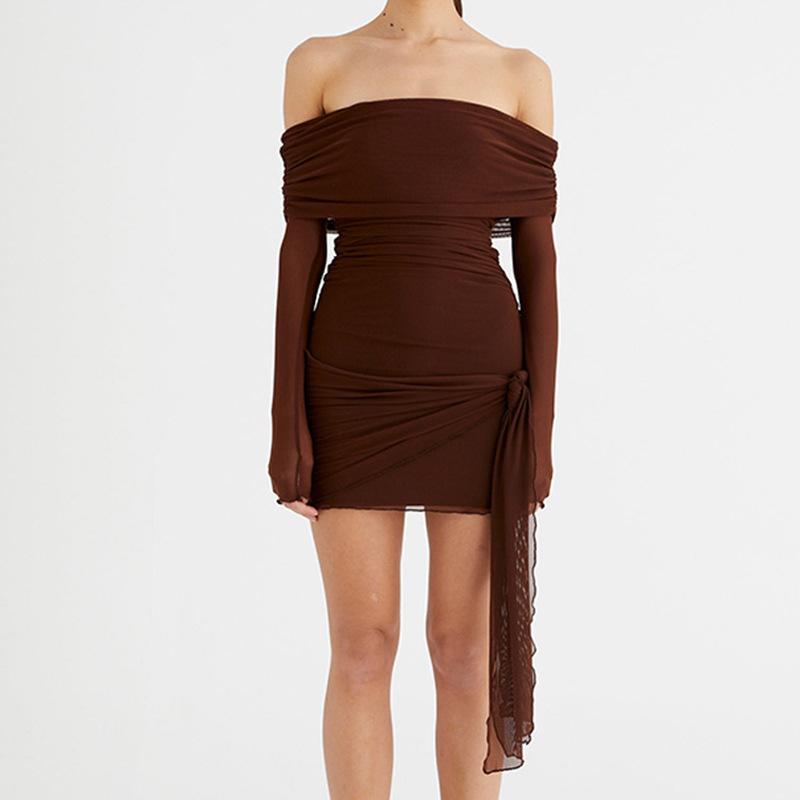 Сексуальное сетчатое платье без бретелек и облегающее бедра в европейском и американском стиле для весны и лета L коричневый
