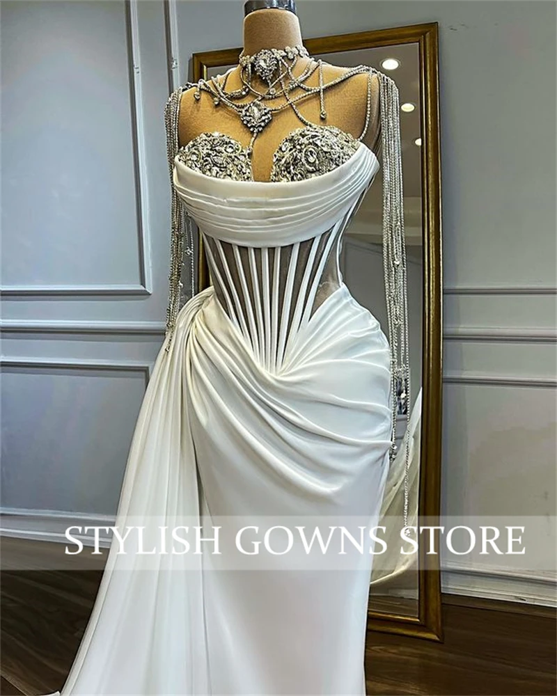 Сексуальные белые атласные вечерние платья с сердечком, отделанные бисером, модель 2022 года, платье с бахромой и складками для дня рождения