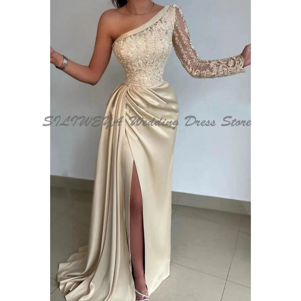 Сексуальные платья для выпускного вечера Вечерние платья на одно плечо Русалка с вентиляционным отверстием без рукавов Высокое качество длиной до пола, вечерние платья со шлейфом Alliques Simple