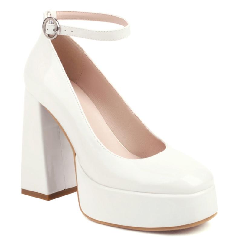 Сексуальные туфли-лодочки на высокой платформе, женские туфли с круглым носком и ремешком на щиколотке, черные, белые, для вечеринки, свадьбы, офиса, женские 2025, новая весна 36 белый