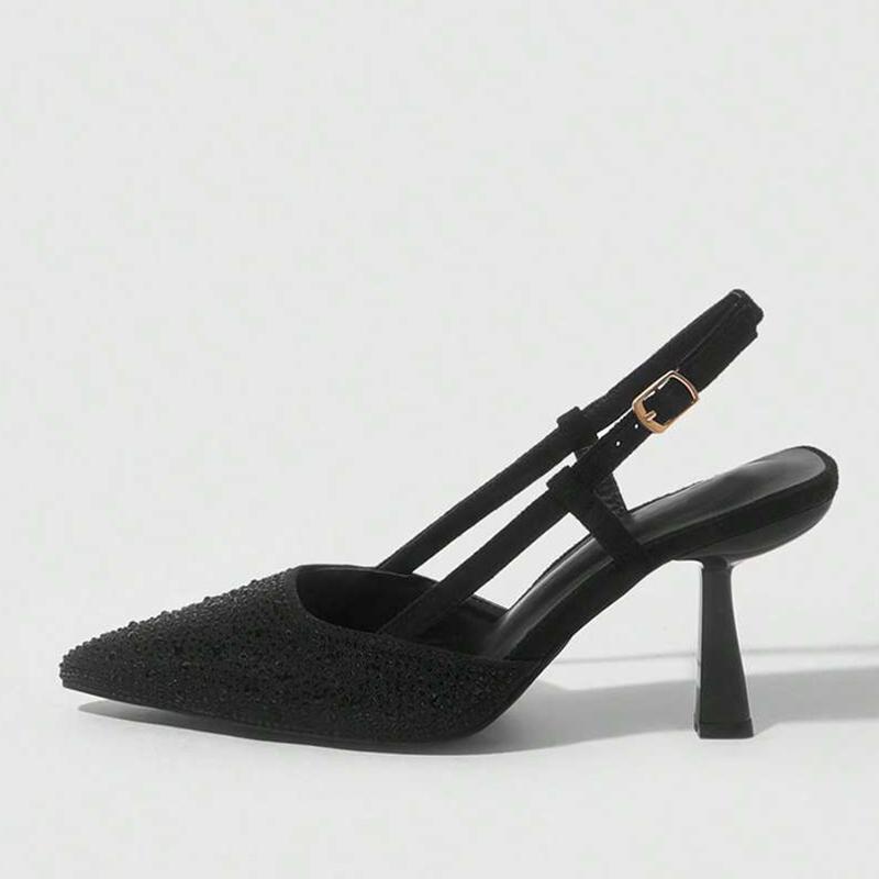 Сексуальные туфли-слингбэки Женские туфли Мода Кристалл Стразы Острый носок Ремешок с пряжкой сзади Низкий тонкий каблук Мюли Сандалии 36 чёрный