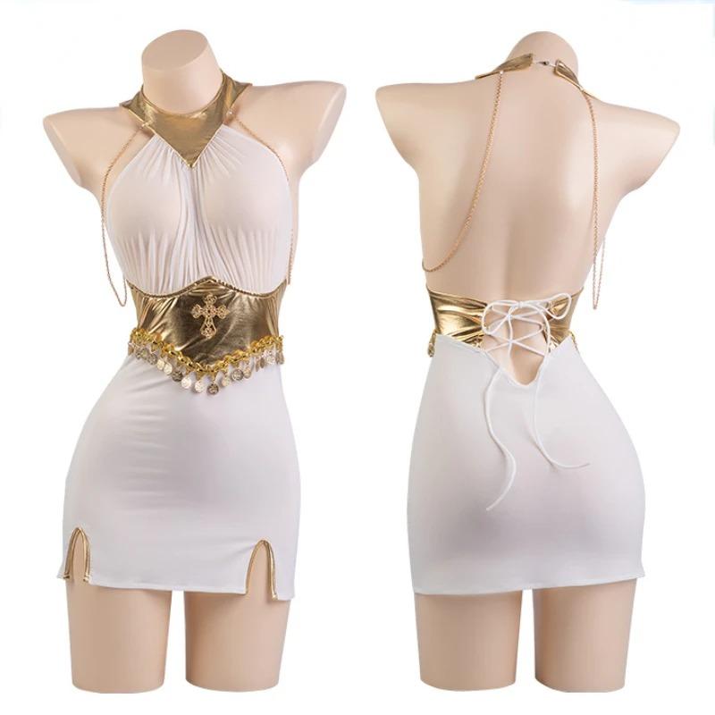 Сексуальный газовый прозрачный костюм древнего ангела для девочек в вестерне, карнавальный костюм с открытой спиной, платье с лямкой на шее, египетская богиня, наряды для ролевых игр One Size