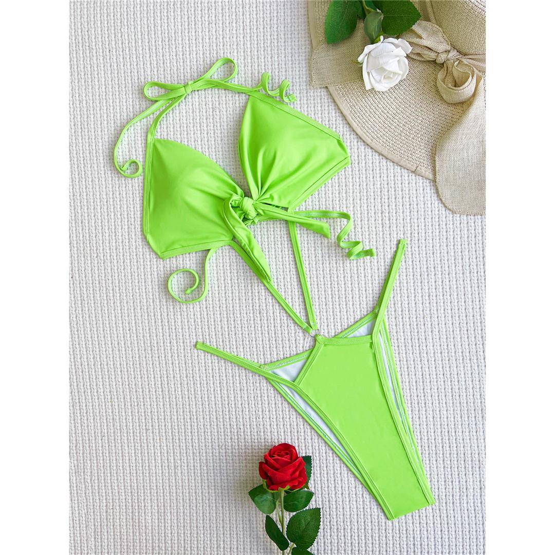 Сексуальный монокини с лямкой на шее и завязками, цельный купальник с открытой спиной, женский купальник, женский купальный костюм с ремешками, купальный костюм для плавания L зелёный