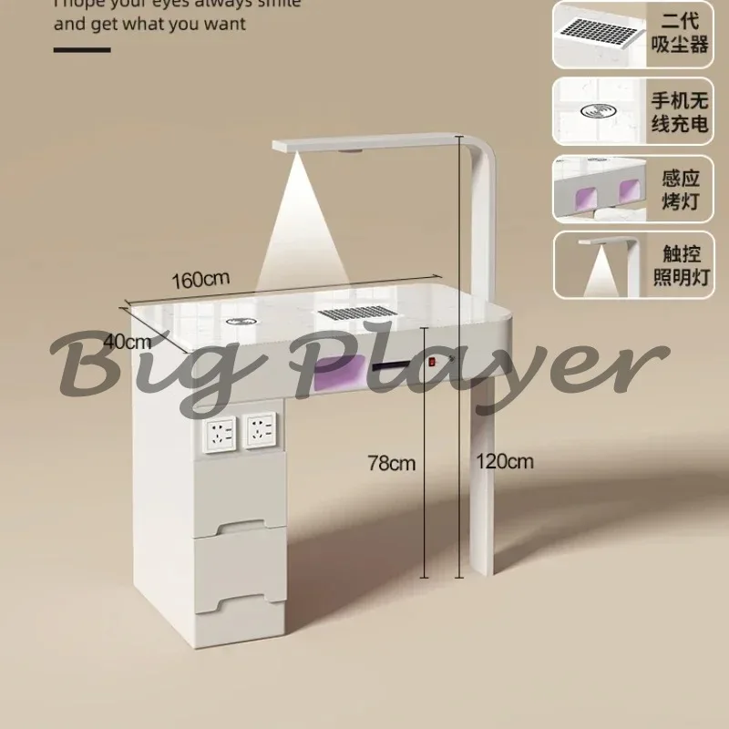 Cream Style Nail Table And Chair Set With Embedded Second-generation High-power Vacuum Dust Cleaner Commercial Manicure Table