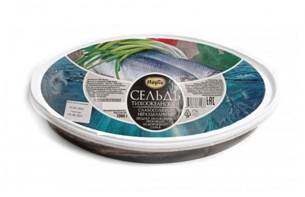 Сельдь слабосоленая «Марти» в рассоле неразделанная с головой, 1 кг
