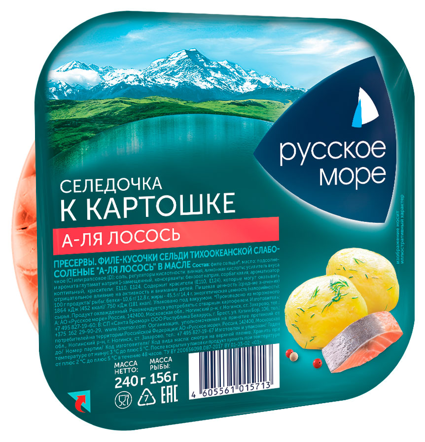 Сельдь слабосоленая в масле Русское море А-ля лосось филе-кусочки, 240 г