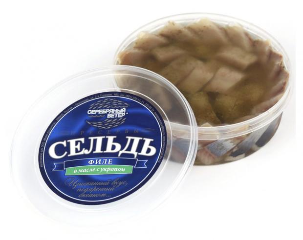 Сельдь слабосоленая филе-кусочки «Серебряный ветер» в масле с укропом, 500 г