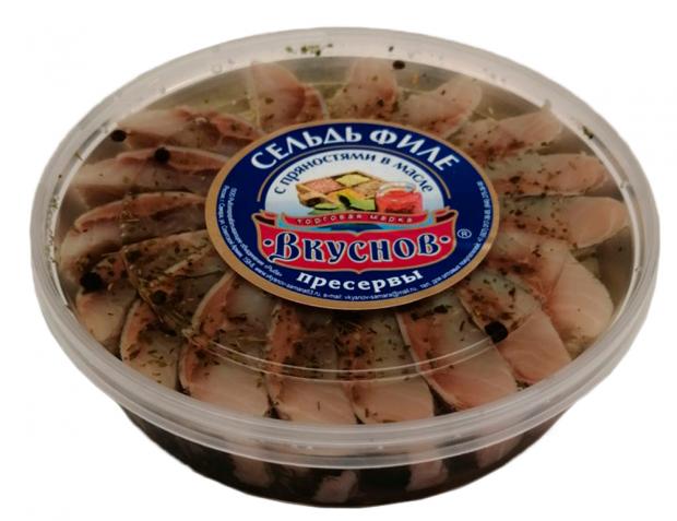 Сельдь филе-кусочки «Вкуснов» в масле с пряностями, 350 г