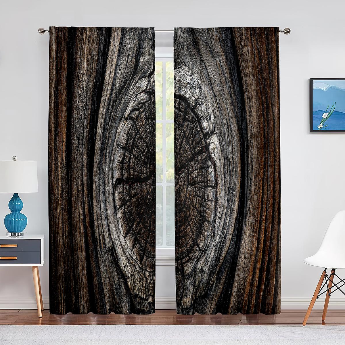 Сельский дом Стиль Западный Коричневый Примитивный Деревянный Тюль Шторы для Гостиной Шифоновая Прозрачная Вуаль Кухня Спальня Оконные Занавески W65X60H(cm)X2Pcs&Grommet Top