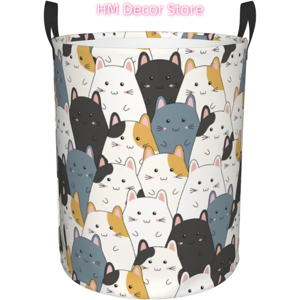 Семейная корзина для белья с мультяшным котенком и ручкой, водонепроницаемая складная тканевая корзина, круглая корзина для хранения для ванной комнаты, спальни C