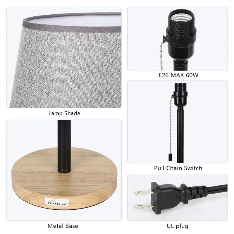 Серая современная деревянная настольная лампа для чтения с цепочкой, набор из 2 шт.