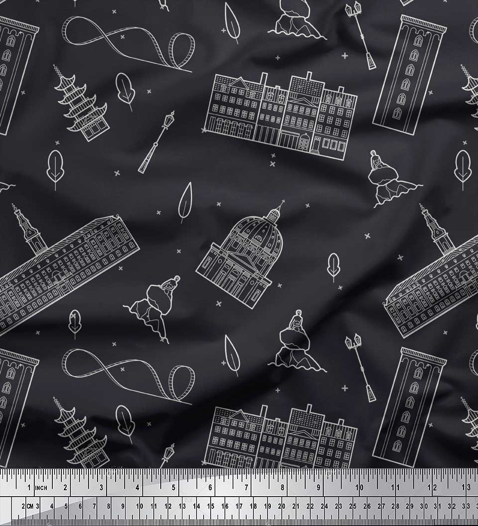 Серая японская креп-сатиновая ткань Soimoi, ткань для уличных фонарей и памятников с архитектурным принтом, 1 метр 42 дюйма 42 Inch Wide - Poly Crepe серый