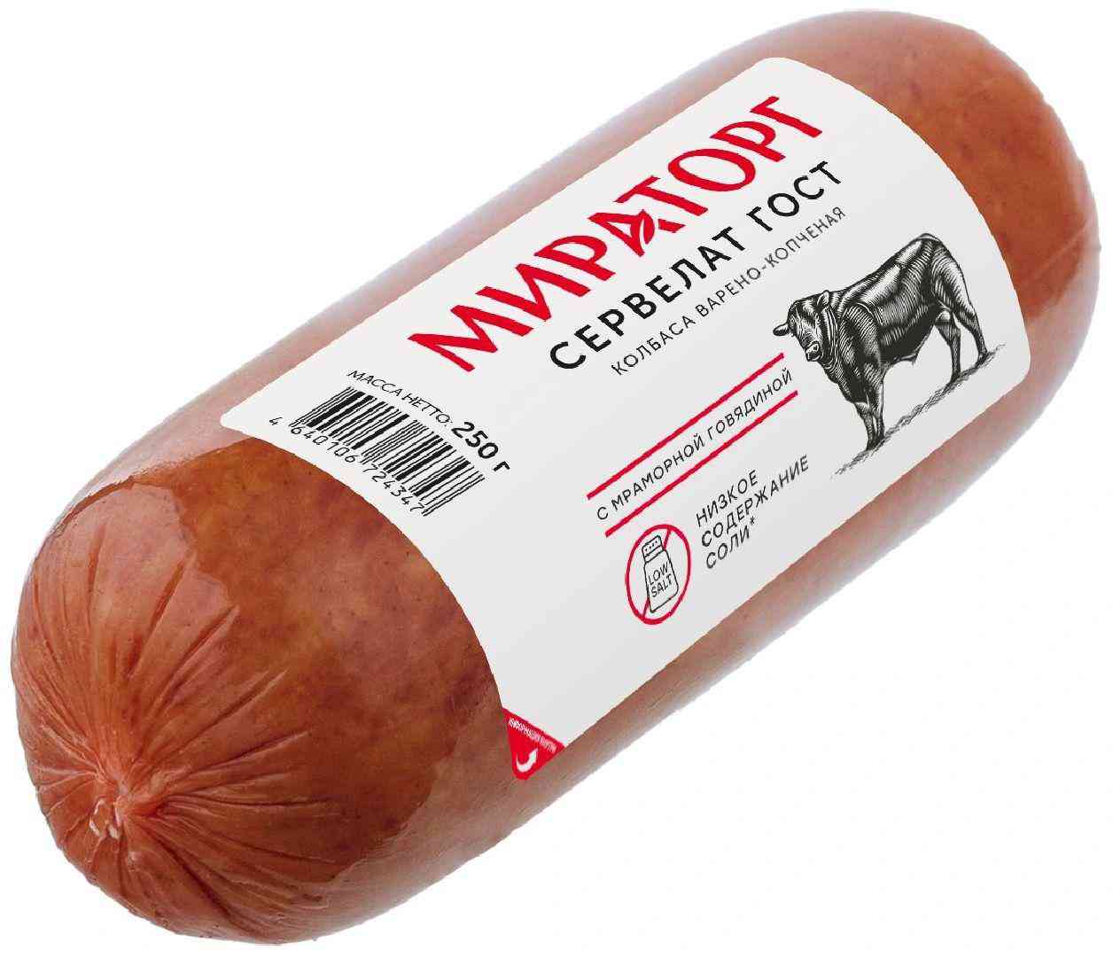 Варено-копченая колбаса «Сервелат» изготавливает строго по ГОСТу. В составе: отборная свинина собственного производства, мраморная говядина Black Angus и натуральные пряности – мускатный орех и черный перец. «Сервелат» от Мираторг отличается насыщенным мясным вкусом с тонким ароматом копчения. Идеально подходит для нарезок, салатов и бутербродов.