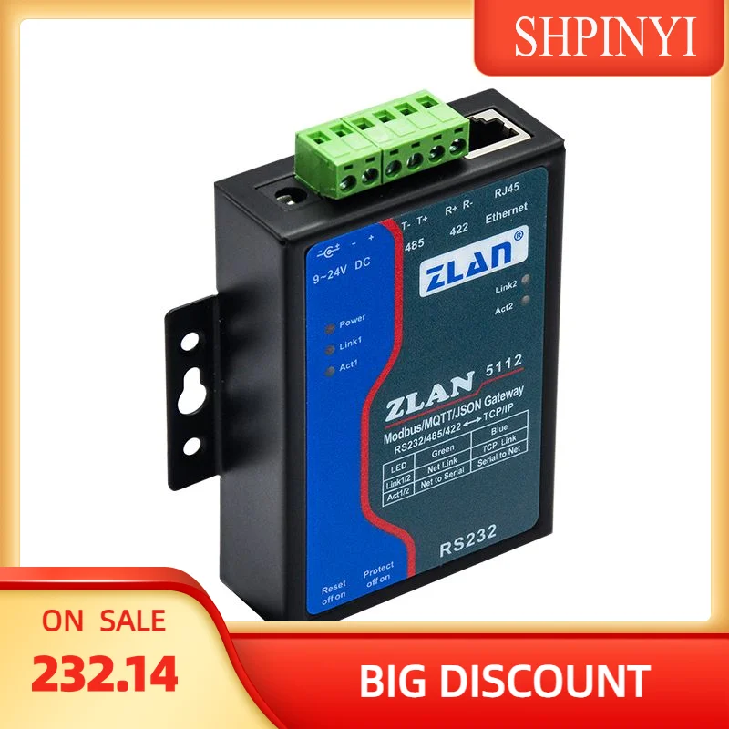 Сервер с одним последовательным портом RS232/485/422 к Ethernet TCP-порт Шлюз Modbus Поддержка передачи JSON MQTTS ZLAN5112