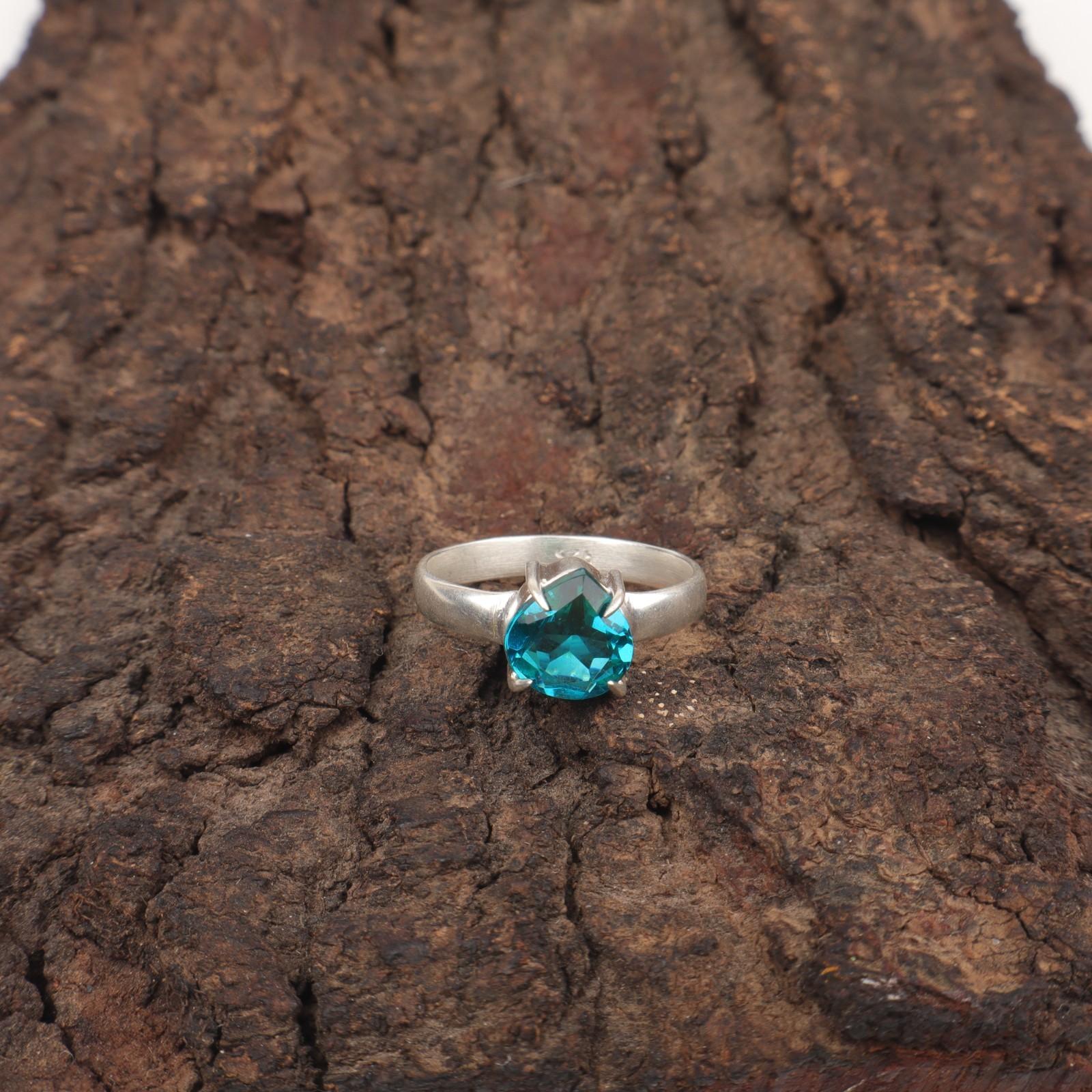 Сердце Натуральный Апатит Стерлинговое Серебро Новое Заявление Подарок на День Рождения Кольцо Ювелирное Изделие RR-43-4 8