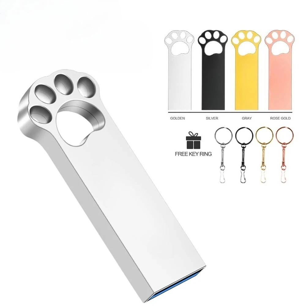 Серебристый металлический кошачий коготь USB-накопитель 16 ГБ Memory Stick 64 ГБ Золотой металлический флэш-накопитель 32 ГБ Бесплатная цепочка для ключей Оригинальность U-диск 8 ГБ 4 ГБ