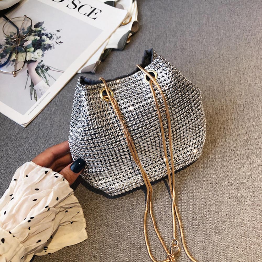 Серебристый/черный цвет, сумки через плечо в форме ведра, модные клатчи для банкетов, вечеринок, блестящая сумка на плечо, женская сумка на цепочке чёрный