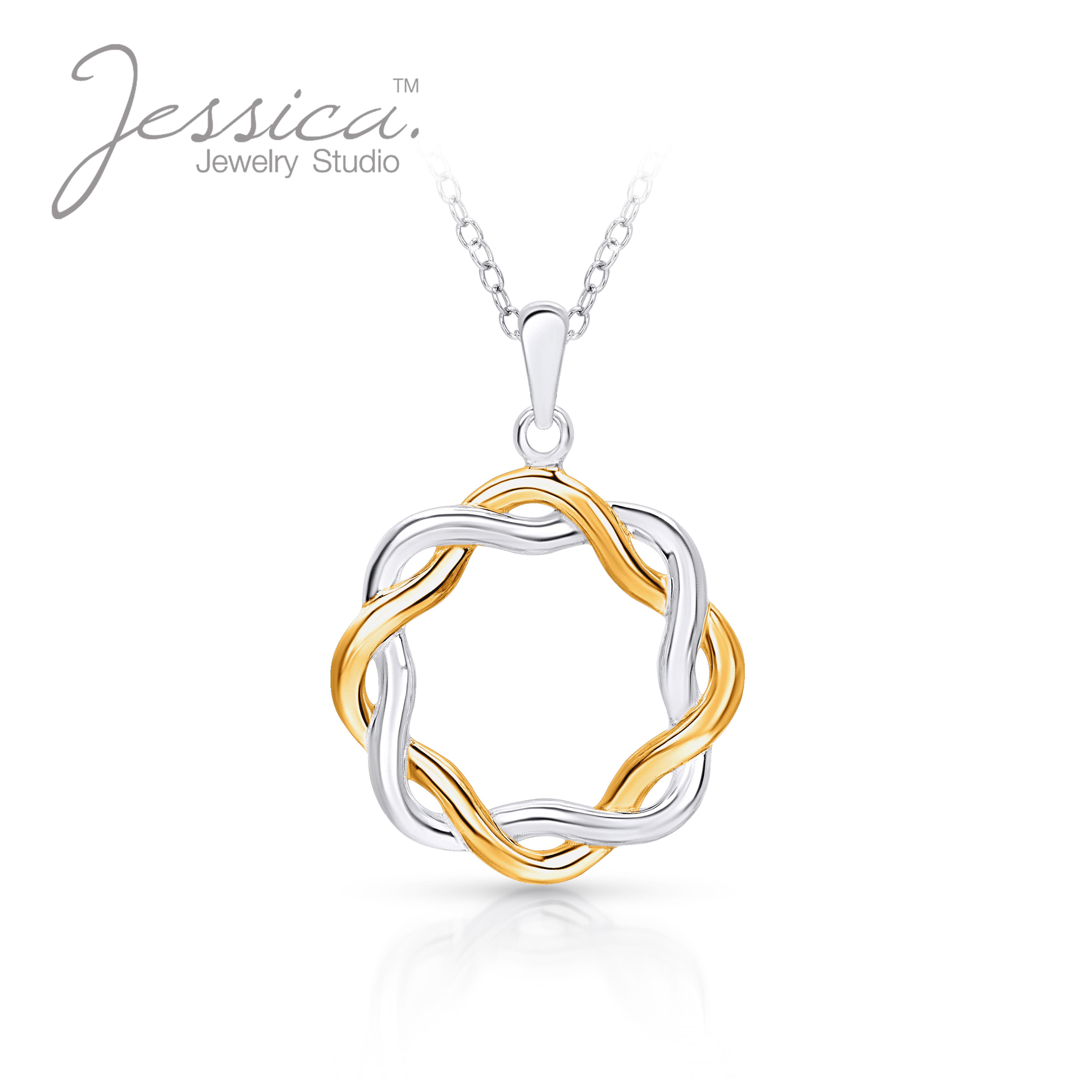 Серебро и желтое золото Два тона с покрытием Twisted Infinity Circle Кулон ожерелье в 925 стерлинговом серебре Подарок для подруги / жены