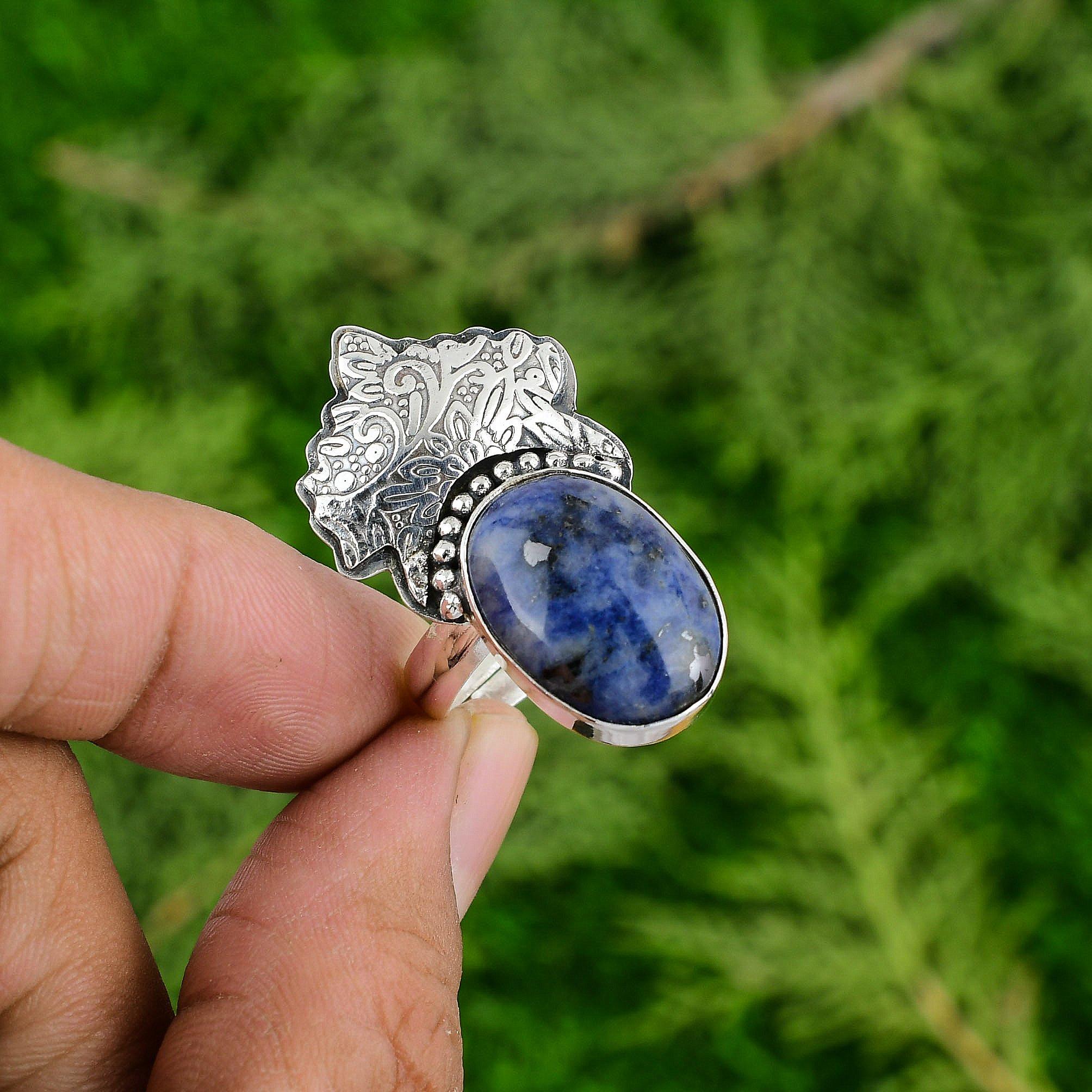 Серебро 925 пробы Натуральный лазурит Мать Сентябрь Штабелируемое кольцо-безель Ювелирные изделия Adjustable