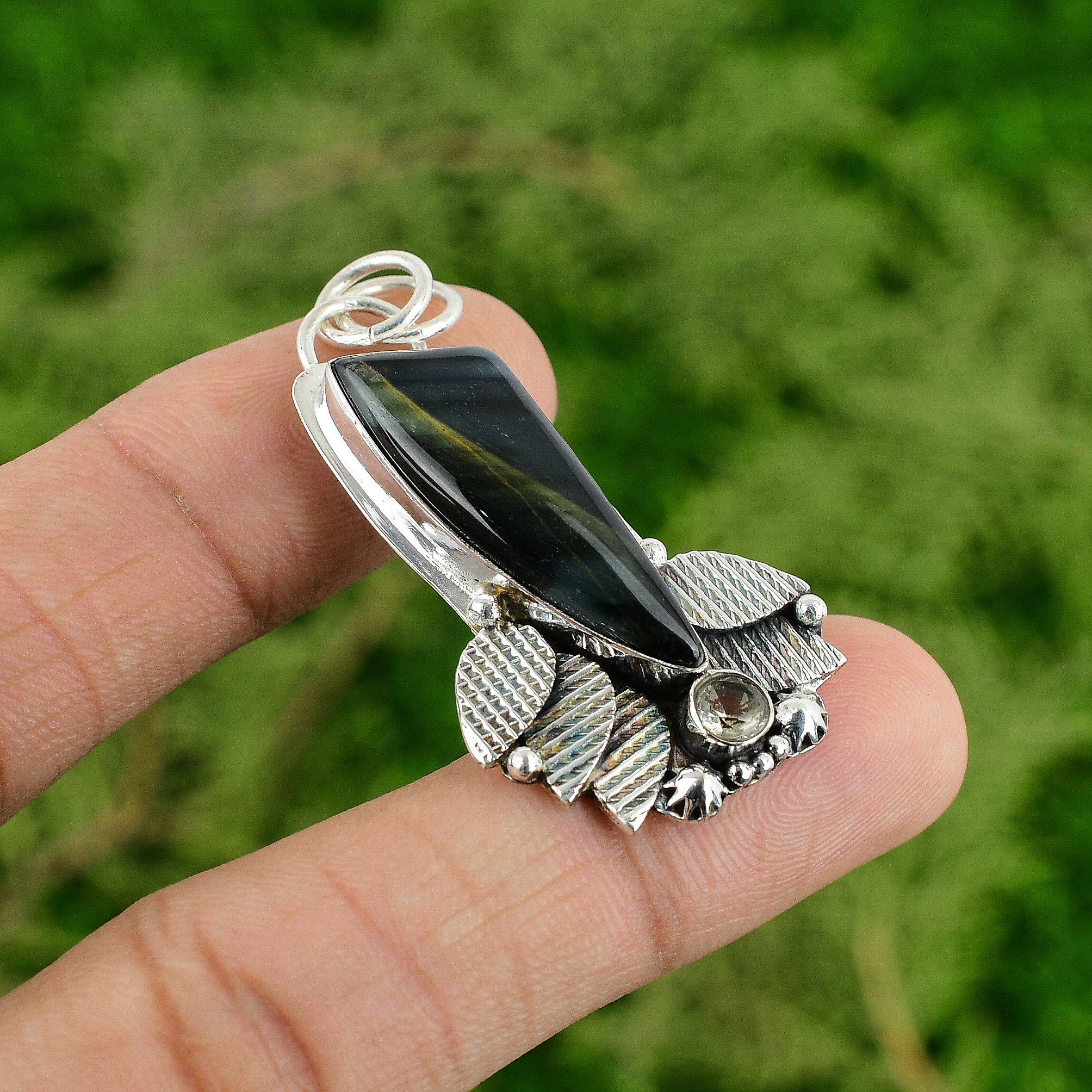 Серебро 925 пробы Неллит Камень Белый Топаз Безель Подвеска на День Рождения Ювелирное Изделие