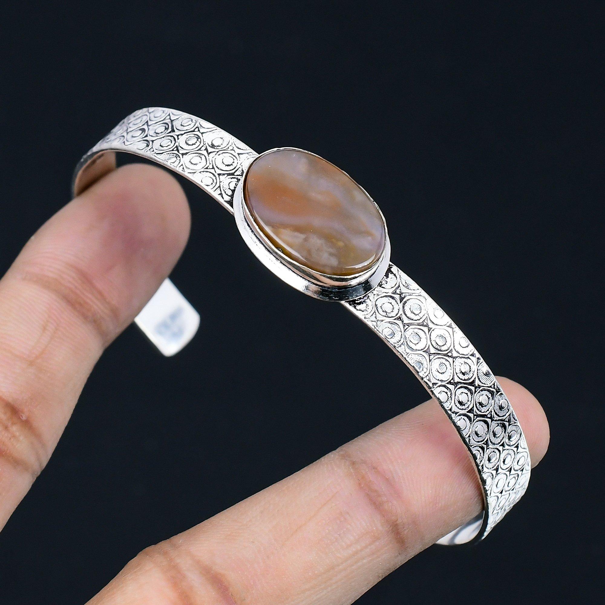 Серебро 925 пробы Овальный Плюмаж Агат Драгоценный камень День рождения Мама Юбилей Браслет Ювелирные изделия Adjustable