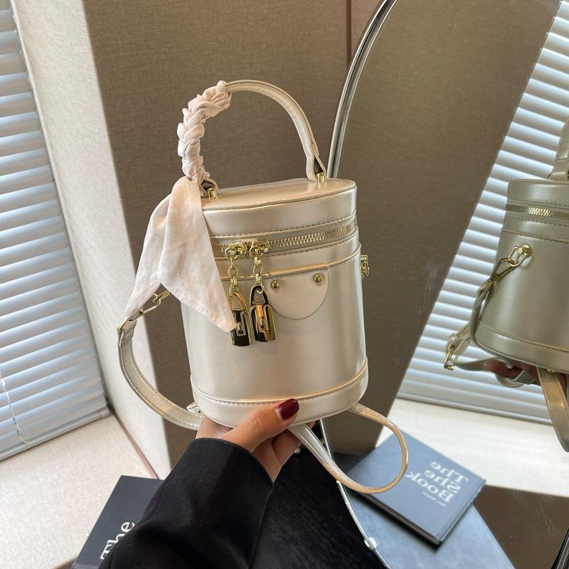 Серебряная простая маленькая сумка женская летняя 2024 новая портативная цилиндрическая сумка модная иностранная универсальная фактурная сумка-мессенджер бежевый