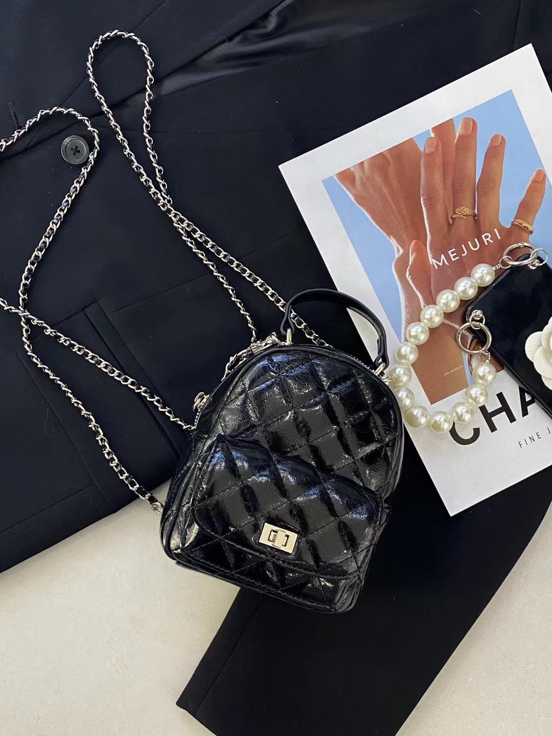 Серебряная сумка женская 2024 новая алмазная цепочка маленькая квадратная сумка портативный рюкзак мини сумка через плечо чёрный