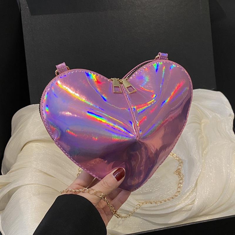 Серебряная сумка женская 2025 новая модная высокая текстура нишевая супер огненная на плечо через плечо сумка-сердце розовый